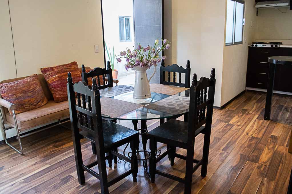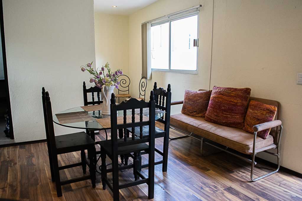 Departamento amoblado de 1 habitación ubicado a 2 minutos caminando de la parada de autobús y a 8 minutos caminando de la Estación de Metro Centro Médico.El departamento tiene living, comedor, cocina (abierta), 1 baño y patio. La habitación 1 tiene cama matrimonial, clóset, 2 mesas de noche y baño en suite; El lugar mide 38m² aproximadamente. Se debe considerar el pago de gastos de servicios de electricidad, gas, internet, TV cable y teléfono que suman $ 58USD aproximadamente. Se debe pagar garantía (depósito) la que será devuelta al finalizar el período de arriendo; además, se debe pagar $ 17USD al momento de devolver el alojamiento para realizar la limpieza del lugar. Cerca del alojamiento se encuentra cerca la Av. Viaducto Miguel Alemán, una vía central que atraviesa la ciudad de Este a Oeste. Es una zona de calles arboladas, muy transitada, con lugares de comida tradicional y gran variedad de comercios, además de tener variados centros médicos. Hay diversos medios de transporte público a distintos puntos de la ciudad, siendo el más cercano el Metro Centro Médico.