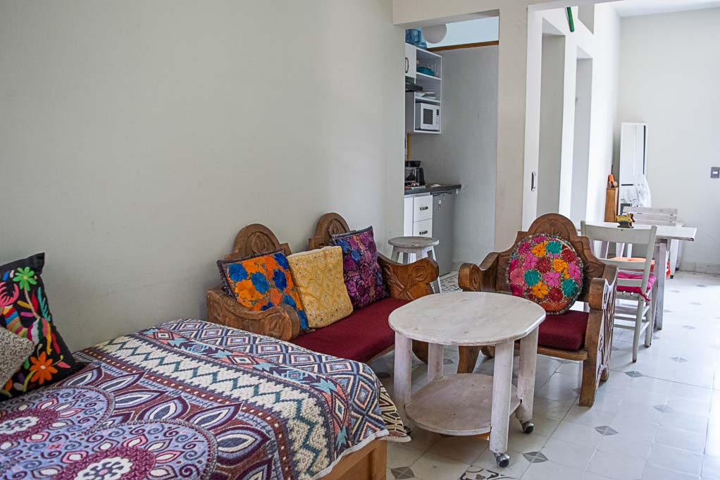 Departamento amoblado de un ambiente (studio) ubicado a 2 minutos caminando de la parada de autobús y a 7 minutos caminando de la Estación de Metro Chilpancingo.El departamento tiene living, comedor, cocina (abierta), 1 baño y balcón. La habitación 1 tiene cama matrimonial, clóset y mesa de noche; El lugar mide 34m² + 2m² de terraza aproximadamente. Los gastos de servicios de agua fría, electricidad, gas, internet y TV cable se pagan por adelantado junto a la renta mensual, con un límite de consumo de $ 87USD. Se debe pagar garantía (depósito) la que será devuelta al finalizar el período de arriendo; además, se debe pagar $ 23USD al momento de devolver el alojamiento para realizar la limpieza del lugar. Cerca del alojamiento se encuentra el Parque España, un a área verde donde las personas acostumbran correr, pasear mascotas o leer, alrededor se encuentran varios cafés y restaurantes. La zona se caracteriza por sus calles arboladas y vanguardistas departamentos. Hay diversos medios de transporte público a distintos puntos de la ciudad.