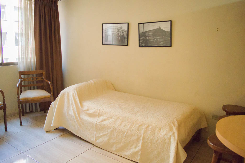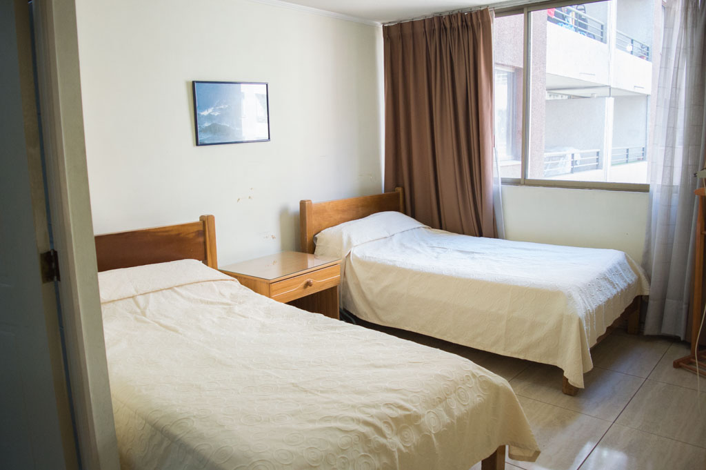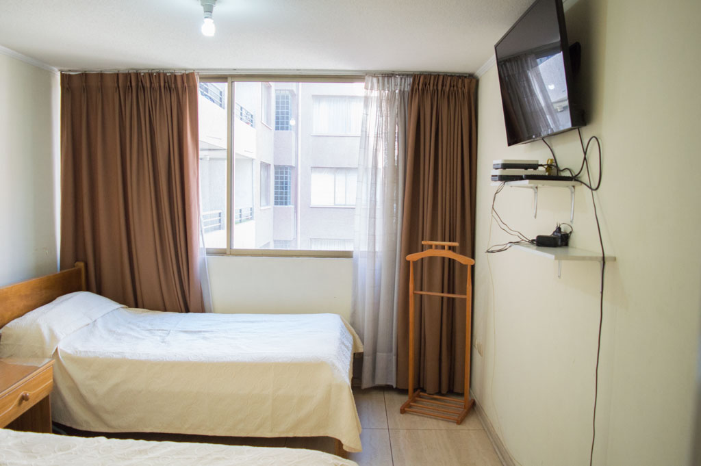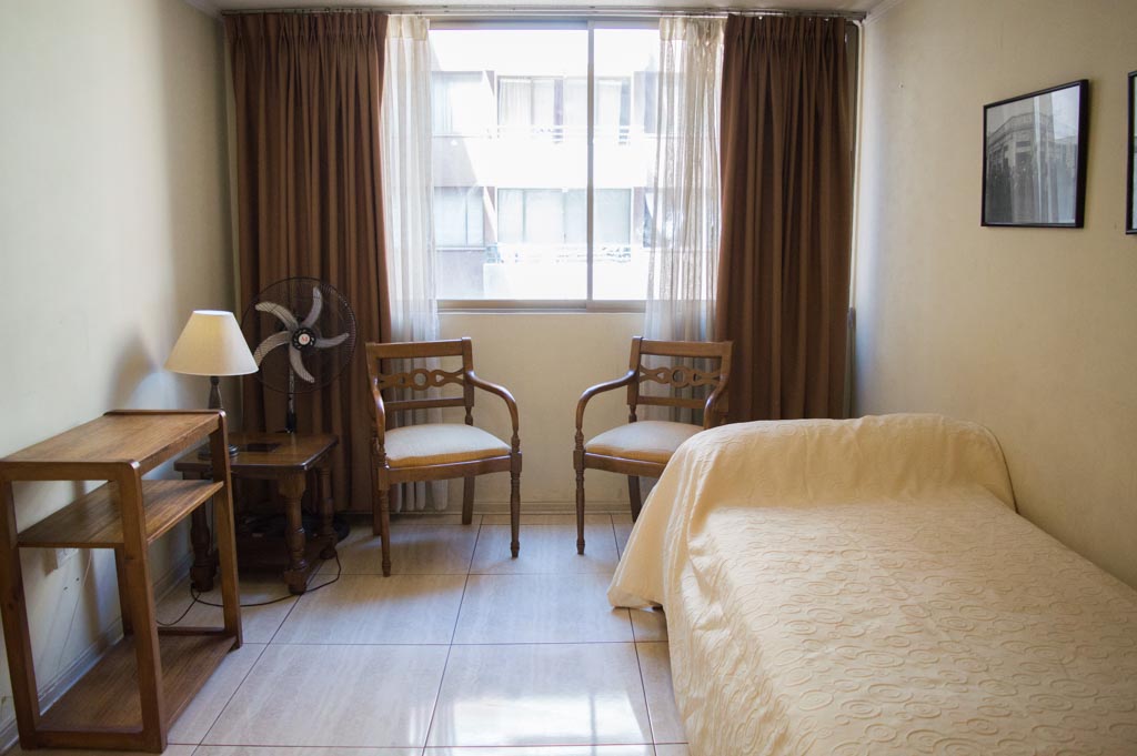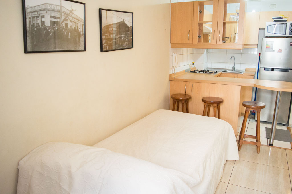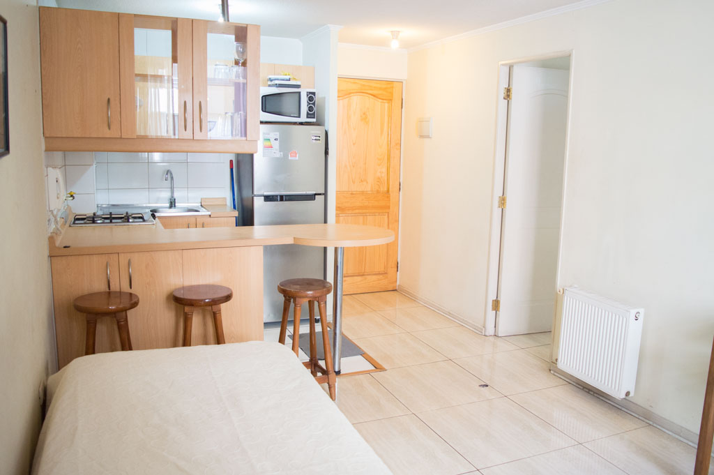 Departamento amoblado de 1 habitación ubicado a 2 minutos caminando de la parada de autobús y a 5 minutos caminando de la Estación de Metro Universidad de Chile.El departamento tiene living, comedor, cocina (abierta) y 1 baño. La habitación 1 tiene 2 camas individuales, walk-in clóset, mesa de noche y baño en suite; El lugar mide 34m² aproximadamente. Los gastos de servicios de gastos comunes, agua caliente, agua fría, electricidad, gas e internet se pagan por adelantado junto a la renta mensual, con un límite de consumo de $ 156USD. El alojamiento tiene lavandería compartida cuyo valor es $ 1USD aproximadamente por carga de ropa (lavado o secado). Se debe pagar garantía (depósito) la que será devuelta al finalizar el período de arriendo; además, se debe pagar $ 39USD al momento de devolver el alojamiento para realizar la limpieza del lugar. Cerca del alojamiento se encuentra la Avenida Bernardo O'Higgins (más conocida como Alameda) donde hay diversos locales comerciales, gran variedad de transporte público y el centro cívico de Santiago. A pasos del metro se encuentra el emblemático Instituto Nacional José Miguel Carrera, la Universidad de Chile y el Teatro Municipal de Santiago.