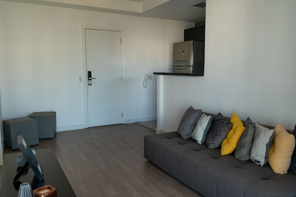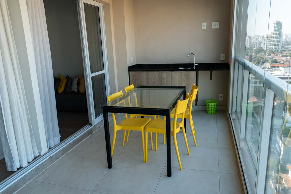 Departamento amoblado de 1 habitación ubicado a 4 minutos caminando de la parada de autobús y a 11 minutos caminando de la Estación de Metro São Paulo-Morumbi.El departamento tiene living, comedor, cocina (abierta), 1 baño, terraza, sala de estar y 1 estacionamiento. La habitación 1 tiene cama matrimonial, armario y cómoda; El lugar mide 44m² + 7m² de terraza aproximadamente. Se debe considerar el pago de gastos de servicios de gastos comunes, agua caliente, agua fría, electricidad, gas e impuesto (IPTU) que suman $ 178USD aproximadamente. Se debe pagar garantía (depósito) la que será devuelta al finalizar el período de arriendo. Cerca del alojamiento se encuentra el aeropuerto de Congonhas y, a pocos minutos de él se ubica la región de Berrini, donde principalmente existen oficinas de varias empresas nacionales y multinacionales, la mayoría de la industria tecnológica. Este sector es residencial, con muchas áreas verdes y gran oferta de comercio y servicios. Tiene fácil acceso al transporte público, con conexión rápida a otras partes de la ciudad.