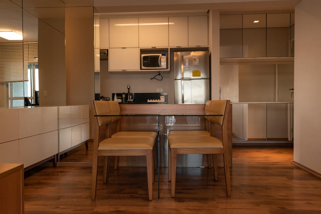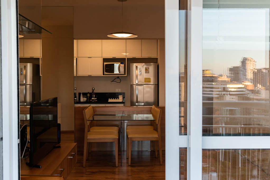Departamento amoblado de 2 habitaciones ubicado a 1 minuto caminando de la parada de autobús.El departamento tiene living, comedor, cocina (abierta), 2 baños, terraza, sala de estar y 1 estacionamiento. La habitación 1 tiene cama matrimonial, clóset, mesa de noche y baño en suite; La habitación 2 tiene cama individual y clóset; El lugar mide 62m² + 10m² de terraza aproximadamente. Se debe considerar el pago de gastos de servicios de gastos comunes, agua fría, electricidad, gas, internet e impuesto que suman $ 224USD aproximadamente. El alojamiento tiene lavandería compartida (lavado o secado). Se debe pagar garantía (depósito) la que será devuelta al finalizar el período de arriendo; además, se debe pagar $ 22USD al momento de devolver el alojamiento para realizar la limpieza del lugar. Cerca del alojamiento se encuentra el aeropuerto de Congonhas y, a pocos minutos de él se ubica la región de Berrini, donde principalmente existen oficinas de varias empresas nacionales y multinacionales, la mayoría de la industria tecnológica. Este sector es residencial, con muchas áreas verdes y gran oferta de comercio y servicios. Tiene fácil acceso al transporte público, con conexión rápida a otras partes de la ciudad.
