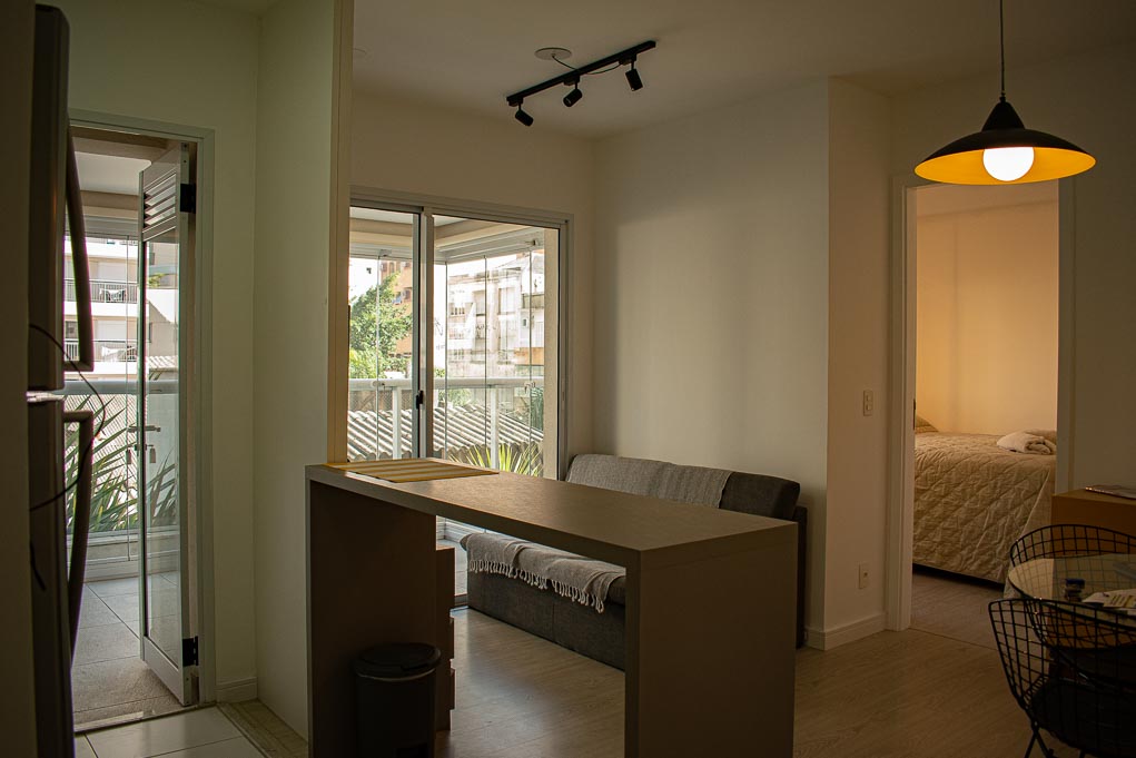 Departamento amoblado de 1 habitación ubicado a 3 minutos caminando de la parada de autobús y a 5 minutos caminando de la Estación de Metro Higienópolis-Mackenzie.El departamento tiene living, cocina (abierta), 1 baño, terraza, sala de estar y 1 estacionamiento. La habitación 1 tiene cama matrimonial, armario y mesa de noche; El lugar mide 36m² + 9m² de terraza aproximadamente. Los gastos de servicios de gastos comunes, agua caliente, agua fría, electricidad, gas e impuesto (IPTU) se pagan por adelantado junto a la renta mensual, con un límite de consumo de $ 214USD. Además, se debe considerar el pago de gastos de servicios de internet y TV cable que suman $ 49USD aproximadamente. El alojamiento tiene lavandería compartida cuyo valor es $ 1USD aproximadamente por carga de ropa (lavado o secado). Se debe pagar garantía (depósito) la que será devuelta al finalizar el período de arriendo. Cerca del alojamiento se encuentra una de las regiones más entretenidas de la ciudad, conocida como Baixo Augusta, con diversos restaurantes, bares y espacios culturales. A pocos minutos caminando, llegarás al Parque Augusta que es un lugar ideal para relajarse o practicar ejercicios al aire libre y también, a la Avenida Paulista que es una de las avenidas más importantes de la ciudad; el sector es considerada uno de los principales centros financieros de Brasil, además de poseer diversos puntos de interés turístico y cultural. Tiene fácil acceso al transporte público, con conexión rápida a otras partes de la ciudad.