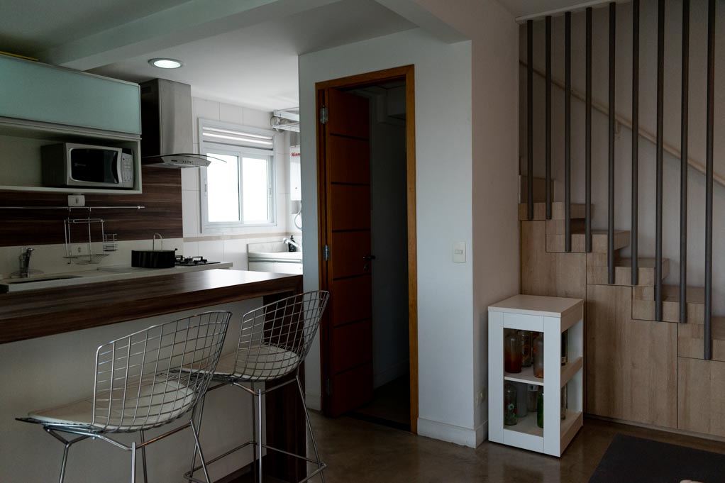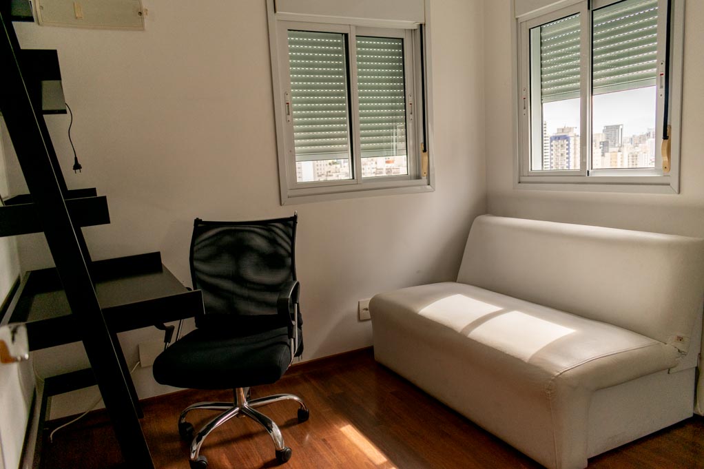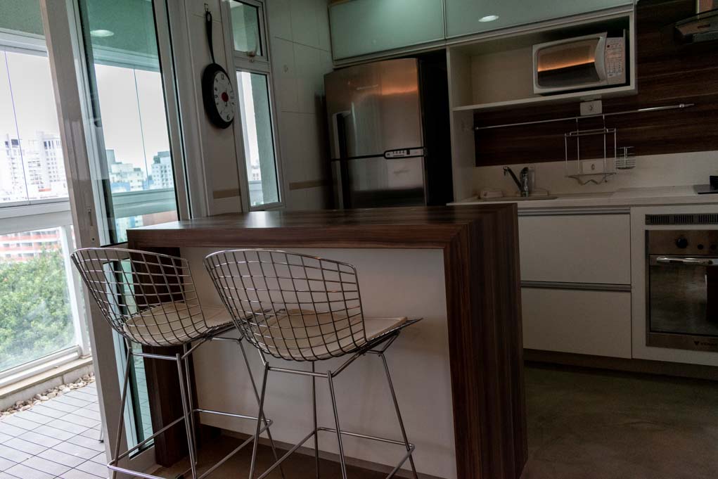 Departamento amoblado de 2 habitaciones ubicado a 3 minutos caminando de la parada de autobús y a 10 minutos caminando de la Estación de Metro Eucaliptos.El departamento tiene living, comedor, cocina (abierta), 1 baño, 1 ½ baño, balcón y 2 estacionamientos. La habitación 1 tiene cama matrimonial, clóset y 2 mesas de noche; La habitación 2 tiene sofá cama, clóset, escritorio y silla; El lugar mide 57m² + 2m² de terraza aproximadamente. Los gastos de servicios de gastos comunes, agua caliente, agua fría y gas se pagan por adelantado junto a la renta mensual, con un límite de consumo de $ 312USD. Además, se debe considerar el pago de gastos de servicios de electricidad que suman $ 20USD aproximadamente. Se debe pagar garantía (depósito) la que será devuelta al finalizar el período de arriendo; además, se debe pagar $ 30USD al momento de devolver el alojamiento para realizar la limpieza del lugar. Cerca del alojamiento se encuentra el aeropuerto de Congonhas y el área posee múltiples comercios y servicios, mayormente bares y restaurantes, además de diversas oficinas de empresas nacionales y multinacionales. La región cuenta con muchas áreas verdes y tranquilidad, lo que brinda un perfil residencial. Tiene fácil acceso al transporte público y conexión rápida a otras partes de la ciudad.